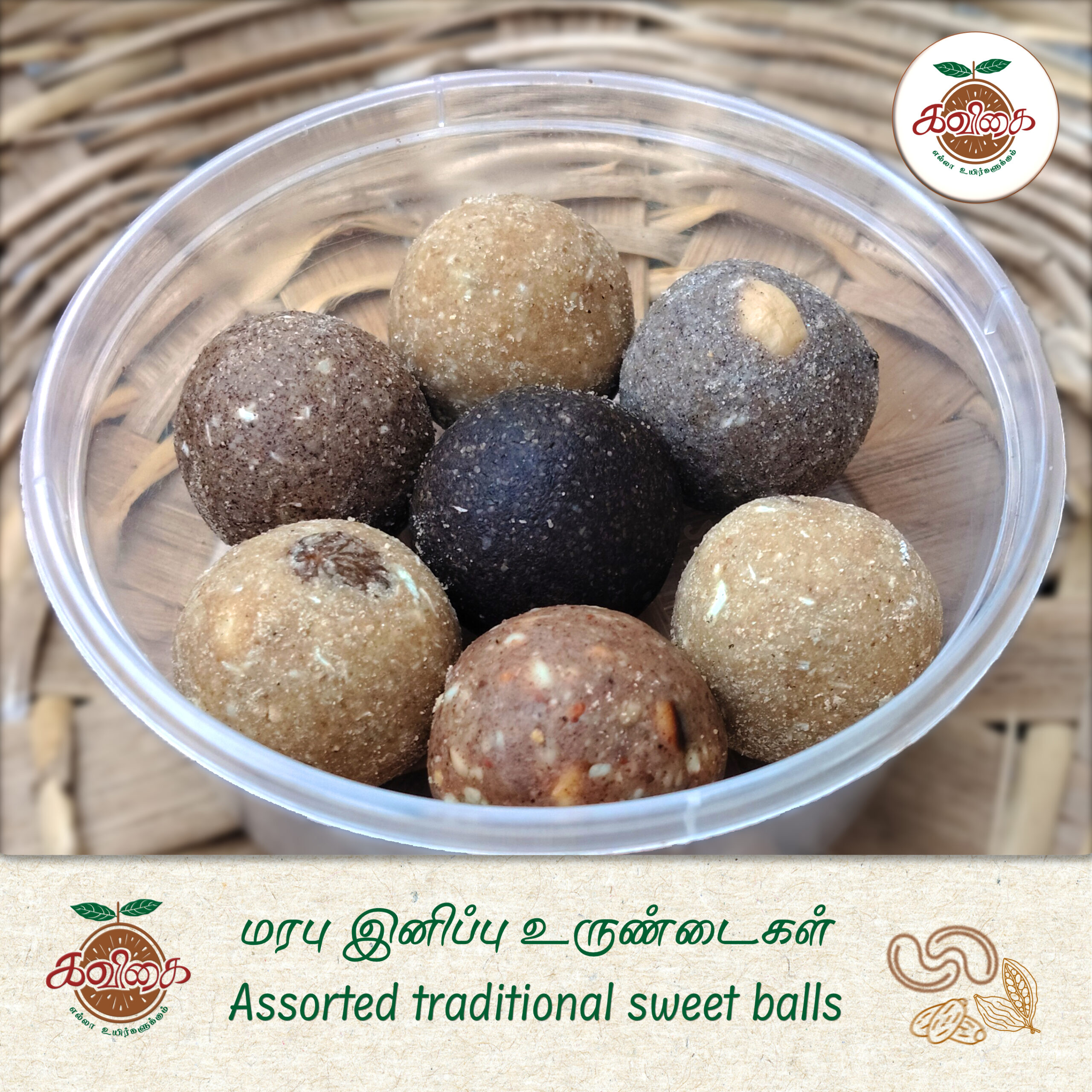 A box contains Assorted / Mixed of 7 Sweet balls each of 20gm weight with a shelf life of 30 days from the date of packing.